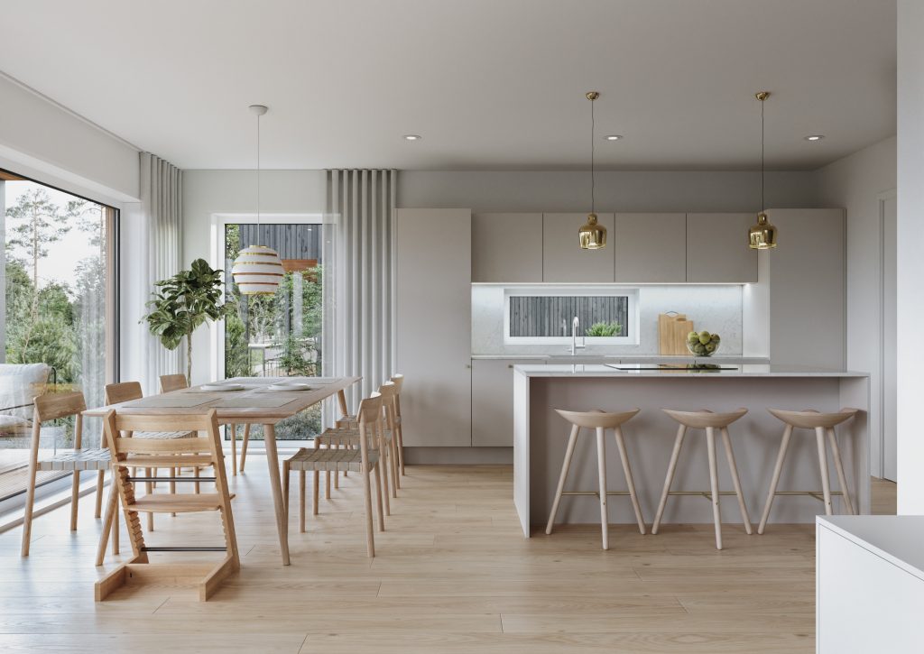 Jotta uusi kotisi olisi juuri sinun näköisesi, sinulla on mahdollisuus valita pintamateriaalit kolmesta valmiiksi kuratoidusta sisustusteemasta, ja me rakennuttajana teemme visiostasi totta.