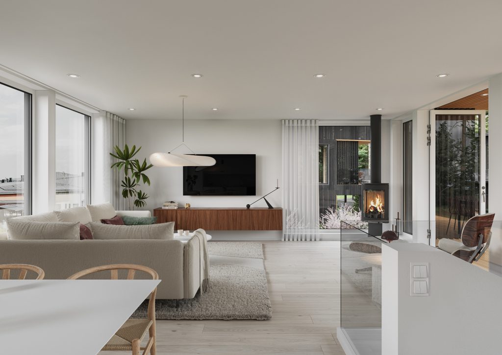 - Sisustussuunnittelijan valitsemat ajattomat pintamateriaalit muodostavat sisä- ja ulkotilojen kanssa saumattoman kokonaisuuden. Asuntojen vakiovarustukseen kuuluu viilennys sekä kivitasot ja autokatoksessa on valmiina varaus sähköautonlataukselle.